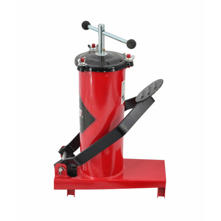 Tvirta plieninė talpykla su dangčiu, dažyta milteliniu būdu. Komplektuojamas pistoletas su ilga 3 m ilgio aukšto slėgio žarna, taip pat lanksti žarna ir standus vamzdelis su 4 žiaunų antgaliu, tinkantis standartiniams kalamutiniams purkštukams. Tepalas išpurškiamas stūmokliu, varomu kojiniu pedalu.