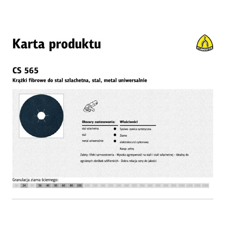 Taikymo sritys: - Nerūdijantis plienas - Plienas - Universalus metalas Savybės: Ryšiklis: sintetinė derva Grūdai: cirkonio oksido aliuminio oksidas Pilno grūdo Privalumai: - Savaiminis aštrinimo efektas - Labai agresyvus plienui ir nerūdijančiam plienui - Idealiai tinka stambiam šlifavimui - Geras kainos ir kokybės santykis