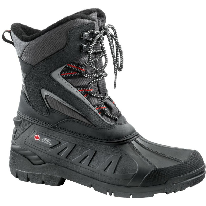 570400 - TPR / tech-fabric techninė avalynė - "Sniego batai" - Padas ir vidpadis pagaminti iš termoplastinės TPR gumos (atsparus vandeniui) - Lankstus ir atsparus net esant žemai temperatūrai (iki -30 °C) - Viršutinė dalis pagaminta iš tvirto vandeniui atsparaus audinio - Šiltas vidinis pamušalas ir vilnonis pamušalas - Mažas galinis vidpadis, kad batus būtų lengva greitai nuimti nuo kojos - Užsegimas dvispalviais raišteliais ir metalinėmis kilpelėmis (be nikelio) - Padas su savaime išsivalančiais grioveliais, užtikrinančiais puikų sukibimą - Itin lengvas, itin patogus dėvėti - Spalva: Juoda - Techninė avalynė nėra išbandyta pagal CE standartus. Tai nėra asmeninės apsaugos priemonės - BRAND - SKL