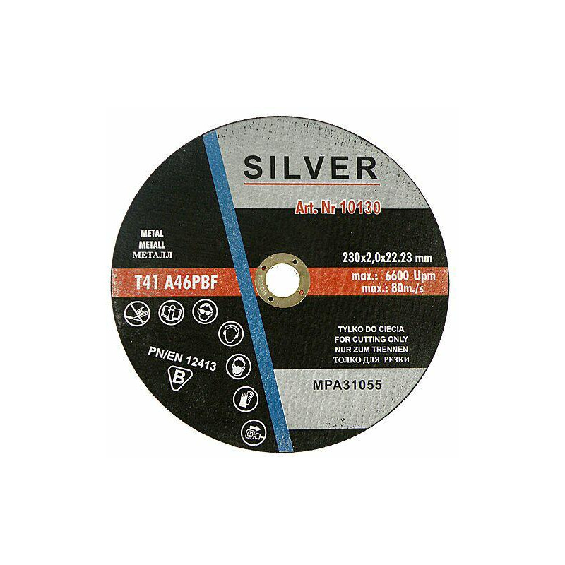 SILVER diskai užtikrina aukštą naudojimo kokybę, nes naudojami itin atsparūs dilimui aliuminio oksido grūdai. Siekiant užtikrinti aukštą pjovimo našumą, SILVER diskai sustiprinti stiklo pluošto audiniu ir sintetine derva, kuri yra disko abrazyvo surišimo medžiaga. 41A tipo plokščias plieninis pjovimo diskas pagamintas iš elektrokorundo*.