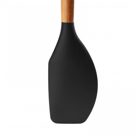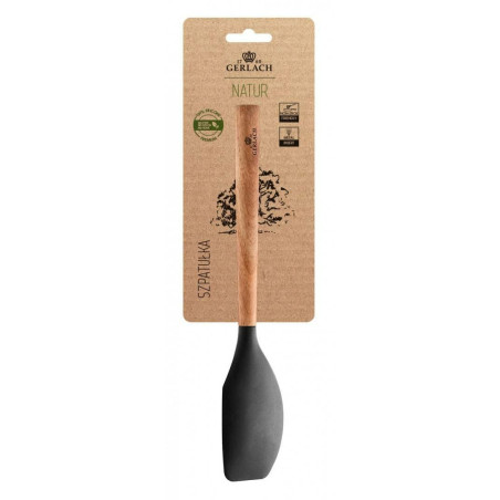 "Gerlach" mentelė yra praktiškas virtuvės įrankis, kuris ypač praverčia kepant. Ji pagaminta iš aukščiausios kokybės juodos spalvos silikono, atsparaus aukštai temperatūrai, ir akacijos medienos. Gamyboje naudojamos medžiagos yra visiškai saugios sveikatai ir aplinkai - jose nėra toksiškų medžiagų, tokių kaip PTFE ar nailonas. Mentelė nebraižo paviršių ir gali būti naudojama ant keptuvių su nelimpančia danga.