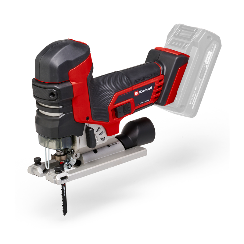 Priklauso „Power X-Change“ serijai, reikalingas 18 V akumuliatorius Bešepetis variklis – didesnė galia ir ilgesnis veikimo laikas „PurePOWER Brushless“ – 10 metų variklio garantija po registracijos T formos rankena, leidžianti lengvai valdyti įrankį dirbant virš galvos. Sklandus darbas, užtikrinantis tikslius pjūvius Įjungiama svyruojanti eiga, skirta greitiems pjūviams Elektroninis greičio reguliatorius, leidžiantis pritaikyti darbą prie medžiagos Pjūklo tvirtinimo sistema be įrankių Dulkių išpūtimo funkcija, užtikrinanti optimalų darbo zonos matomumą LED lemputė, apšviečianti pjovimo zoną Pjovimo linijos indikatorius pjovimo linijos indikatorius, užtikrinantis tikslius pjūvius Fiksavimo mygtukas, skirtas nepertraukiamam darbui Aliuminio vidinis korpusas ir pagrindo plokštė sumažina vibraciją Apsauginė pėdelė, sauganti trapias medžiagas Vadovėlė, skirta tiksliems ir tiesiems pjūviams Komplekte esanti apsauga nuo drožlių, užtikrinanti pjūvius be įplėšimų Švelnus paleidimas užtikrinaaukštą saugumą ir variklio apsaugą