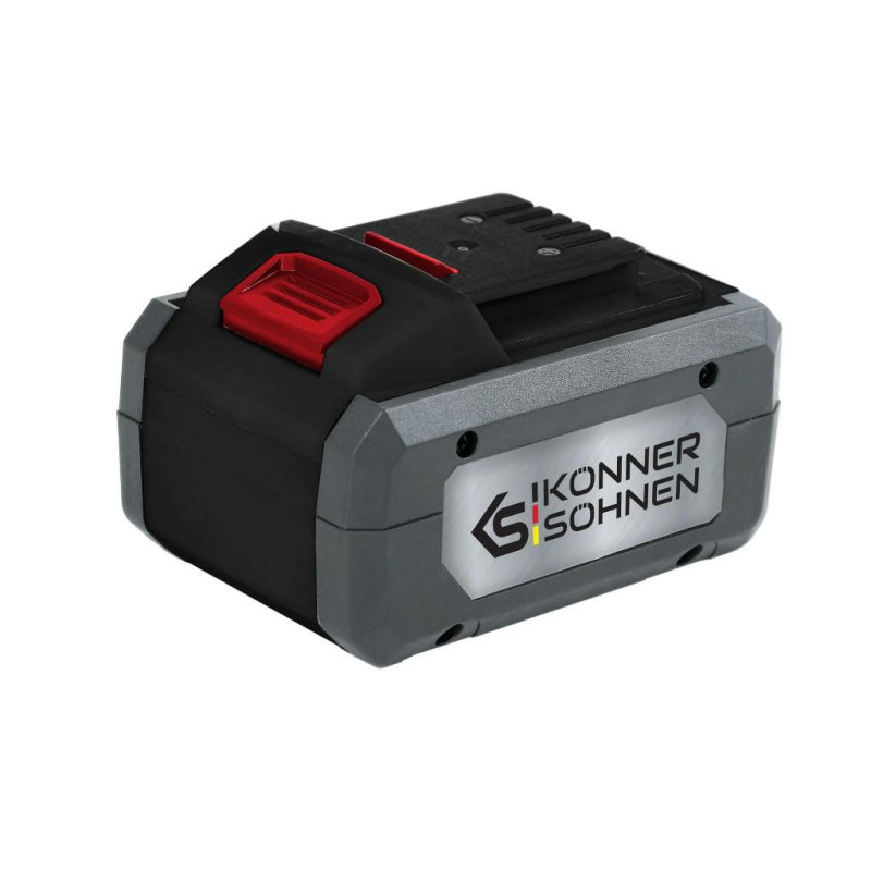 20 V ličio jonų akumuliatorius, tinkantis visiems įrankiams. Šiuolaikiniai "Könner & Söhnen®" ličio jonų akumuliatoriai išsiskiria dideliu patikimumu ir ilgaamžiškumu. Jų tarnavimo laikas yra tris kartus ilgesnis nei švino rūgštinių akumuliatorių. Jie yra lengvi ir kompaktiški, tačiau taip pat pasižymi didele akumuliatoriaus talpa ir nereikalauja jokios priežiūros per visą naudojimo laiką. Juose įrengta aukščiausio lygio apsauga ir įkrovos lygio indikatorius. Techniniai duomenys: Nominali įtampa, V 20 Akumuliatoriaus talpa 6 Ah Akumuliatoriaus tipas Ličio jonų Bendrieji matmenys (DxSxŠxV), mm 130×90×80 Grynasis svoris, kg 1,09 Bendrasis svoris, kg 1,1 Tinka: KS CS20V-12 KS CS40V-14 KS CS40V-16 KS BCT-20V KS BCT-40V KS HT-20V KS LBV-40V