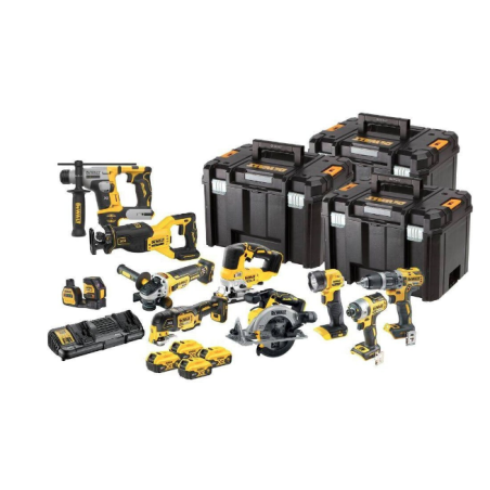 DCK1012P4T-QW DEWALT.COMBO 18V RINKINYS DCK1012P4T (DCD796, DCF887, DCS565, DCS382, DCS356, DCS334, DCH172, DCG405, DCE088NG18, DCL040) 4x5.0Ah 3xTSTAK