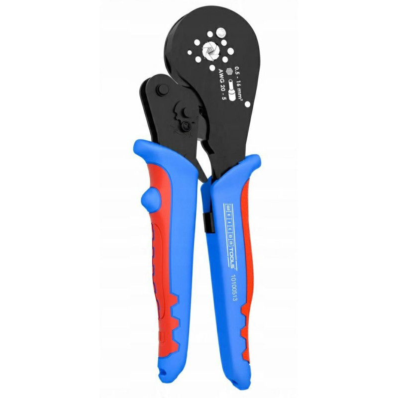 Darbinis diapazonas: 0,5-16 mm2 Užspaudimas: šešiakampis Svoris: 0,586 kg Ilgis: 222 mm Izoliuotoms ir neizoliuotoms movoms užspausti Viengubam ir dvigubam užspaudimui Dėl optimalaus sverto santykio procesas nereikalauja daug jėgos Darbas viena arba dviem rankomis Raktelinė sistema pakartotinam užspaudimui Ergonomiška rankena