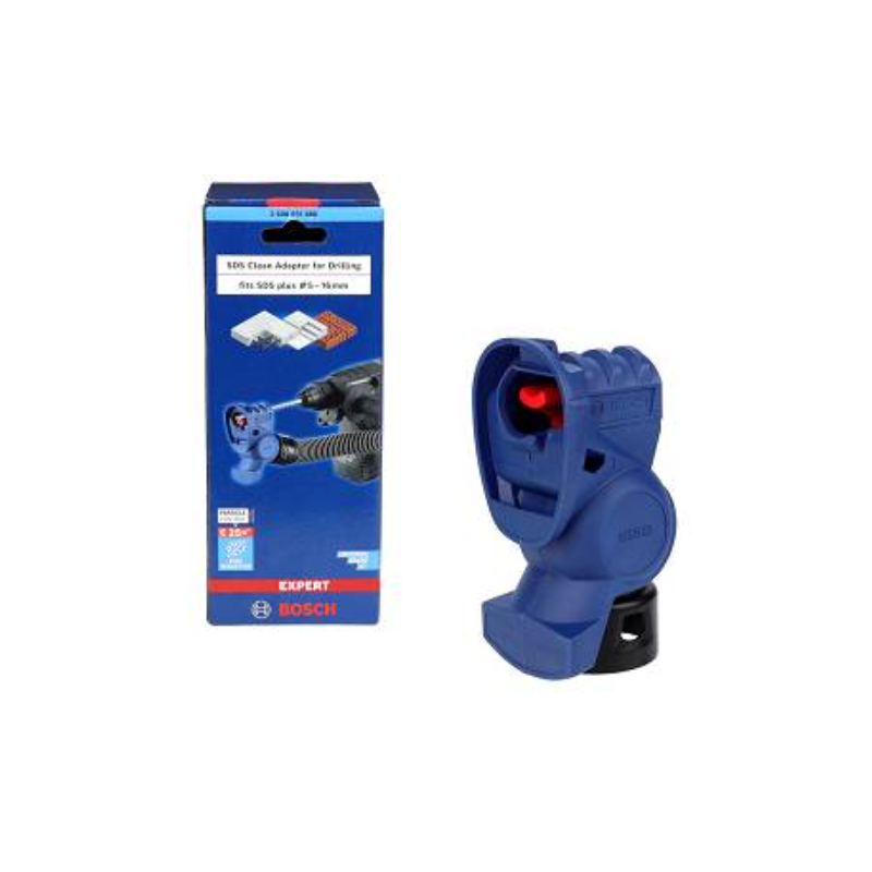 BOSCH EXPERT SDS CLEAN adapteris pasižymi paprastumu - gręžtuve sumontuotas grąžtas eina per adapterio flanšą. Pradedant gręžti, adapterio antgalis pasiekia sienelę. Tokiu būdu antgalis su grąžtu sugauna iškastą medžiagą, o kitoje antgalio pusėje prijungtas siurbliukas ištraukia susidariusias dulkes.