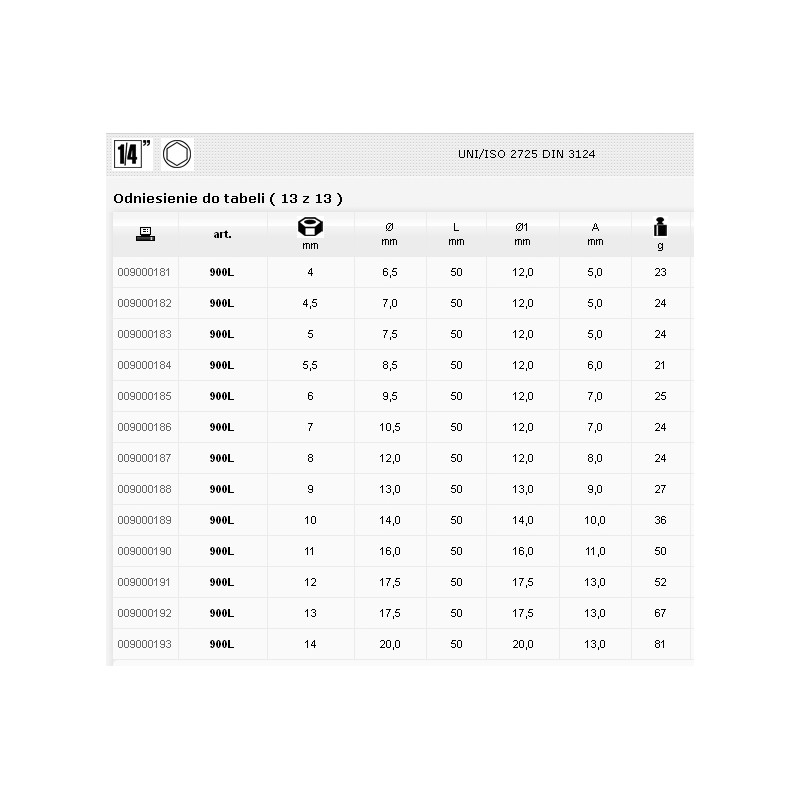 Ilgas šešiakampis lizdas 1/4", modelis 900l, dydis 10 mm