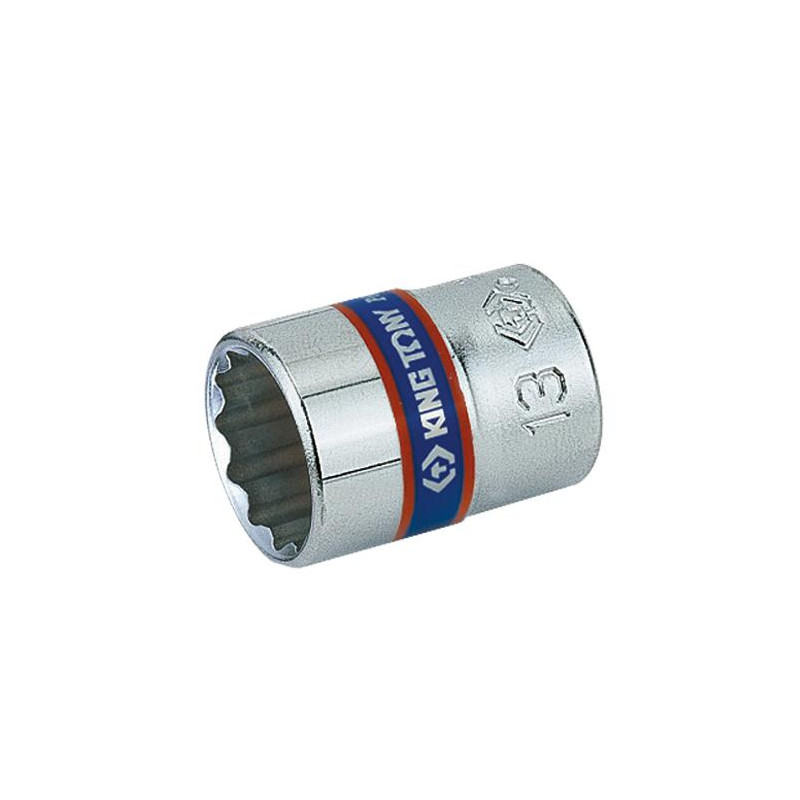 Trumpasis lizdas "King Tony" 1/4". 7 mm x 24 mm, 12 taškų lizdas. Pagamintas iš aukštos kokybės chromvanadžio plieno. Poliruotas ir chromuotas. Plonasienė konstrukcija iš kvadratinės pusės. Keturios rutulinės įpjovos. DIN 3124, ISO 2725-1.