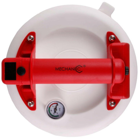 Naudojant vakuuminį siurbimo padą su automatiniu pastovaus slėgio palaikymu, galima visiškai susikoncentruoti į plytelių klijavimą ir padidinti darbo greitį bei kokybę Automatinis siurbimo pado darbinio slėgio palaikymas Baltos minkštos gumos darbinis paviršius, leidžiantis tvirtinti tiek blizgias, tiek tekstūrines plyteles nepaliekant gumos žymių ant plytelės paviršiaus Mechaninis ir elektrinis slėgio matuokliai Akumuliatoriaus įkrovos lygio indikatorius Siurbimo pado guminio paviršiaus apsauga transportuojant Techniniai duomenys Tipas: Elektrinis siurbimo padas Paskirtis: Medžiaga: plastikas, guma, metalas Skersmuo: 200 mm Bendrieji matmenys be korpuso: 200 mm: Bendrieji matmenys su korpusu: 250 x 300 x 110 mm Maksimali apkrova: 200 kg Slėgio matuoklis: Taip