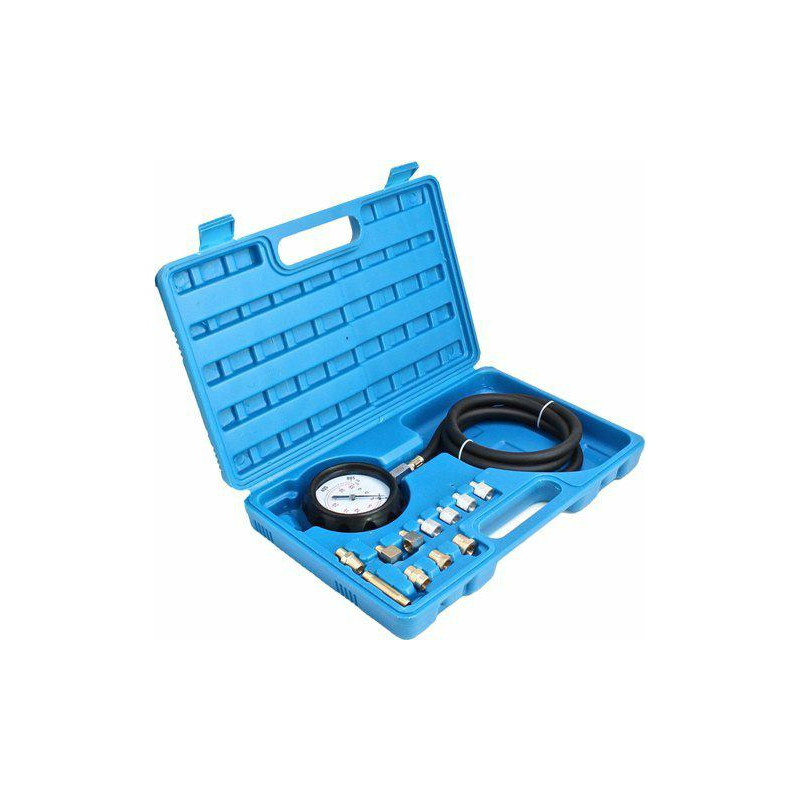 Specializuotas testeris, skirtas variklio alyvos slėgiui ir automatinės transmisijos alyvos slėgiui tikrinti automobiliuose ir sunkvežimiuose. Padeda diagnozuoti alyvos siurblio ir variklio pažeidimus bei aptikti slėgio praradimą alyvos sistemoje - Tikslus laikmatis, padedantis tiksliai diagnozuoti alyvos siurblį - Lanksti ir alyvai atspari 600 mm / 1/8" NPT jungiamoji žarna - Greitosios jungtys ir adapteriai, skirti alyvos tiekimui nutraukti, kad būtų galima greičiau diagnozuoti - Laikmatis su dviem rodmenimis 0-400 psi (0-28 bar) - Adapteriai: 1/4" NPT ir 3/8 NPT.