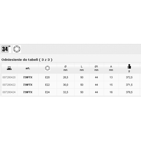 Smūginė galvutė su vidiniu torx profiliu ir 3/4" lizdu, modelis 728ftx, e 20 Beta ( 728FTX/20 )