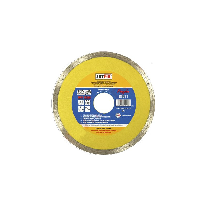Formuojant apvadą deimanto kristalai išdėstomi (orientuojami) taip, kad būtų pasiekta optimali jų aštrių briaunų pjovimo kokybė. NAUDOJIMAS: KLINKERIUI, keraminėms plytelėms, TERASAI, plonam marmurui ir granitui, gamtiniam akmeniui Techniniai duomenys: Skersmuo: 125 mm Vidinė anga: 22,2 mm Maksimalus greitis: 80 m/s Pakuotė: kartoninė dėžutė.