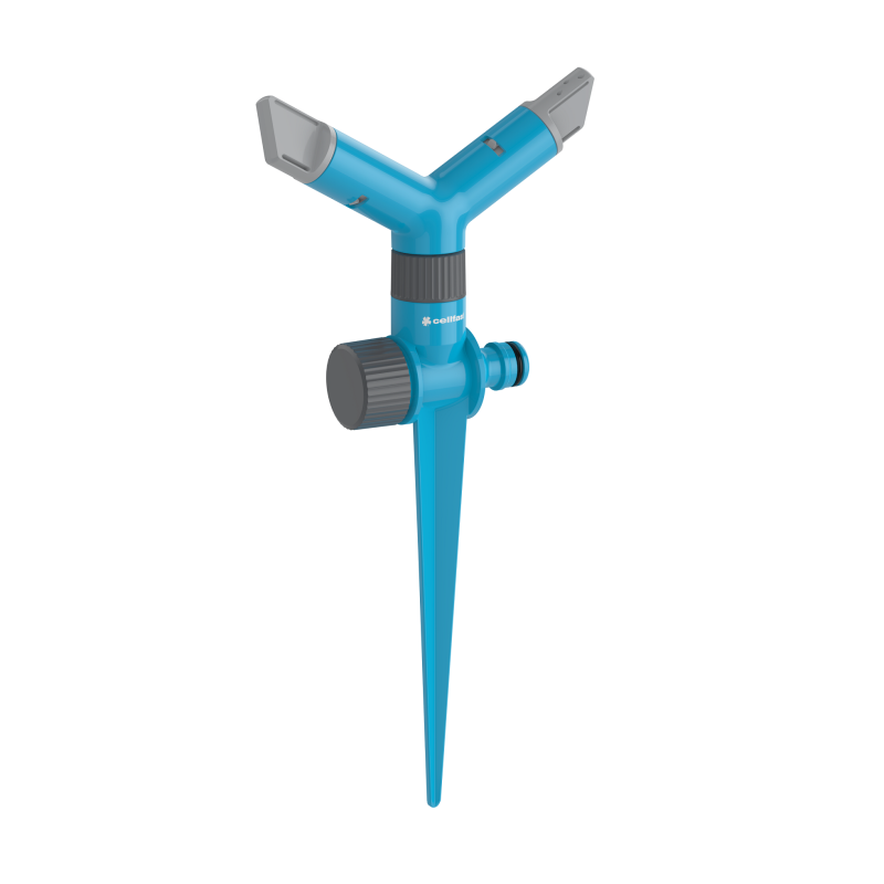 besisukantis purkštuvas su dviem antgaliais ant smaigalio pagrindo 8 lizdai sukimosi greičio reguliavimas sukant lizdus purkštukai tolygus laistomo ploto drėkinimas dėl tikslaus purkštukų išdėstymo nuoseklaus jungimo galimybė laistymo plotas iki 154 m2 smaigalio ilgis 145,5 mm