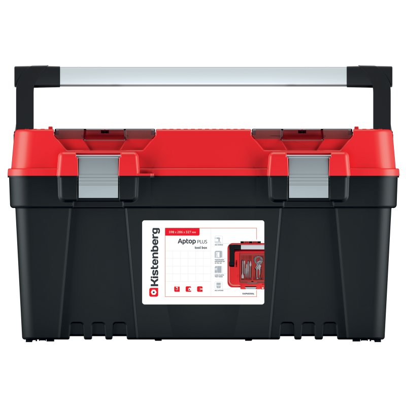 Įrankių dėklas APTOP PLUS 60 KAP6030AL - Ilgis 598 mm - Ilga aliumininė rankena - 2 organizatoriai dangtyje - Skaidrus organizatoriaus dangtis iš tvirto polikarbonato - Įrankių dėklas su vieta bitams - Korpusas pagamintas iš tvirto polimerinio mišinio - Patvarios aliuminio tvirtinimo detalės - Keliamoji galia iki 25 kg.