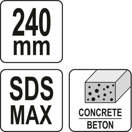 Produkto aprašymas Skirtas SDS-max sukamiesiems plaktukams, naudingas montavimo, statybos ir griovimo darbams, pvz., griovelių kasimui, tinko ir plytelių šalinimui, tiksliam betoninių paviršių lyginimui (peavey). Tinka darbams betone, gelžbetonyje, silikate, pilnavidurių ir tuščiavidurių plytų sluoksniuose. pagamintas iš patvaraus plieno, specialiai grūdinto ilgesniam tarnavimo laikui atsparus pleišėjimui gręžimo griebtuve ilgai išlieka aštrus, o tai gerokai pagreitina atliekamus darbus laikiklis: SDS-max matmenys: 60 x 60 x 240 mm
