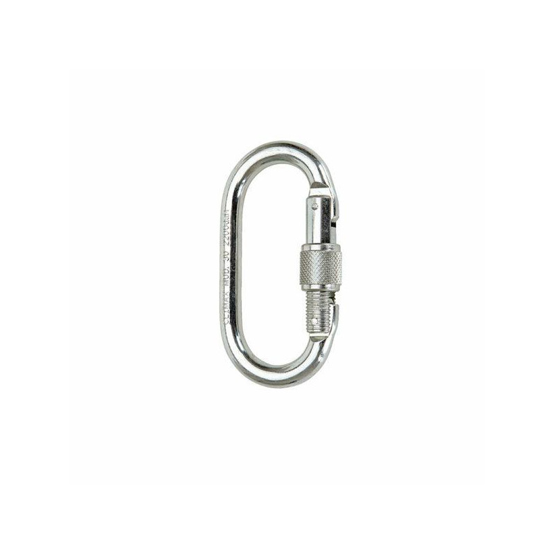 Plieninis karabinas su srieginiu užraktu ir spyruokle, kuri automatiškai uždaro užrakto petį. Būtinas visai sistemai, skirtai darbui aukštyje, ir atskiriems komponentams sujungti. (atidarymo kampas 16 mm), svoris 176 g.