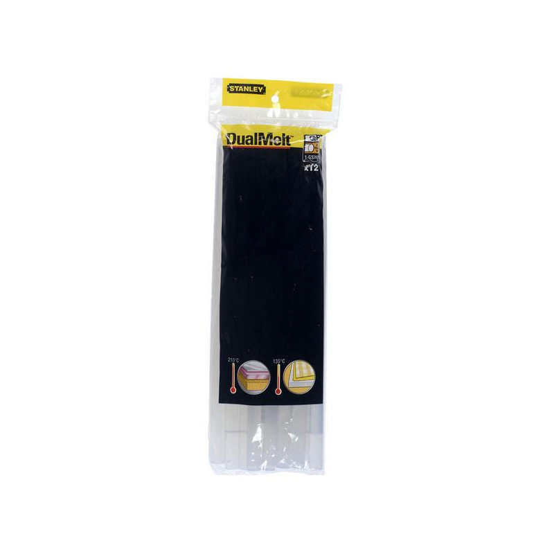 Karšto lydymosi klijų pistoletas 12 vnt. Profix. tinka šilumai jautrioms medžiagoms klijuoti. 12 mm skersmens. 254 mm ilgio.