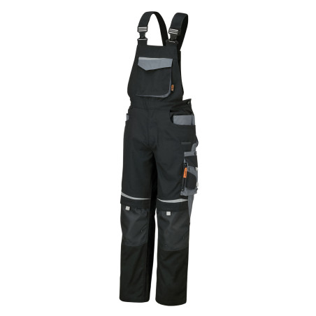 - Pagaminta iš T/C drobės, 65 % poliesterio, 35 % medvilnės, 280 g/m2 - Cordura® sutvirtinimai ant kelių - 3M Scotchlite™ šviesą atspindintys intarpai - YKK® užtrauktukas - Elastinės petnešos, sagtys greitam atsegimui - Didelė krūtinės kišenė su Velcro užsegimu - Velcro užsegamas įrankių laikiklis šone - Dvi didelės galinės kišenės, viena su kabliuku ir kilpa - Dvi gilios priekinės kišenės su mažomis kišenėlėmis - Kairė kišenė su užtrauktuku, kišenė mobiliajam telefonui su kabliuku ir kilpa bei kišenė su užtrauktuku - Matuoklio kišenė ir plaktuko laikiklis - Velcro užsegamos kišenės kelių pagalvėlėms L dydis