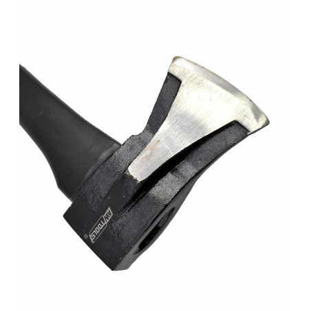 Dėl galvutėje įmontuoto pleišto kirvis neįsirėžia į medžio bloką.