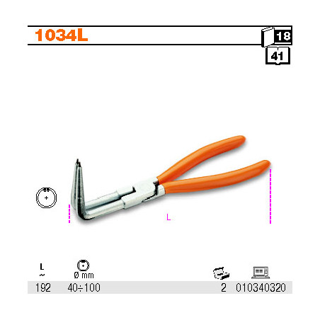 Vidinio žiedo replės sulenktos ilgos Beta 1034L Dviejų kompozitų neslystanti PVC rankena, užtikrinanti didelį patogumą Kaltinis įrankis pagamintas iš aukštos kokybės įrankinio plieno Ilgis: 192 mm