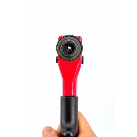Komplektuojamas su 4 keičiamais kniedijimo antgaliais, pritvirtintais prie korpuso.