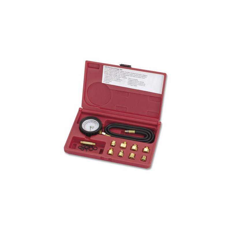 padeda diagnozuoti alyvos siurblio ir variklio gedimus - aptinka slėgio praradimą alyvos sistemoje - tikslus laikmatis, padedantis tiksliai diagnozuoti alyvos siurblį - greitosios jungtys ir adapteriai, skirti alyvos tiekimui nutraukti, kad būtų galima greičiau diagnozuoti gedimą - alyvai atspari, ilga ir lanksti jungiamoji žarna - laikmatis 0-100 psi (0-700 kPa) -Adapteris (1/8-27 į 1/4-18) -Adapteris (1/8-27 į 1-28 BSPT) -Adapteris (1/8-27 į M12-1.5) -atlenkimas -sujungimas -sujungimo linija -adapteris (nuo 1/8-27 iki 3/8-18) -adapteris (nuo 1/8-27 iki M10-1.0) -adapteris (nuo 1/8-27 iki M14-1.5) -nypelis 2"