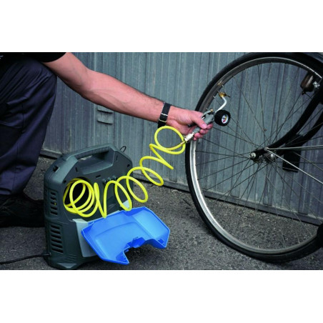 Tiesioginės pavaros stūmoklinis kompresorius be alyvos 1,5 AG 180 l/min (4116023457) Variklio galia: 1,5 AG / 1,1 kW Talpa (įsiurbimo metu): 160 l / min Didžiausias slėgis: 8 bar Maitinimo įtampa: 230 V / 50 Hz / 1F Matmenys: 314x200x347 mm Garsumas: 68 dB Svoris: 5 kg.