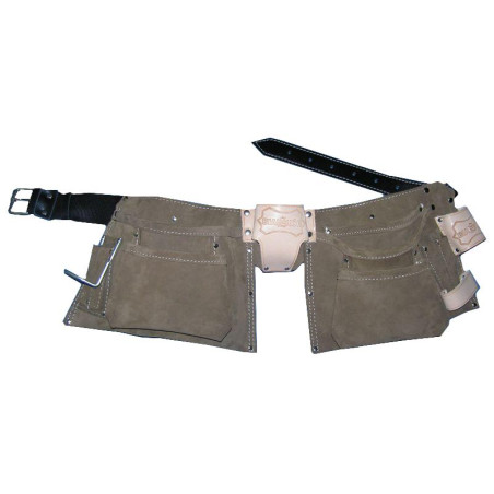 Jednoczęściowy, bardzo trwały podwójnie zszywany i nitowany z kieszeniami i uchwytami na narzędzia.