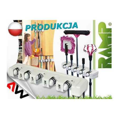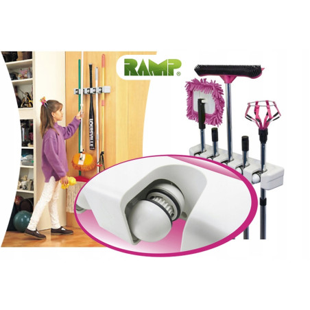 Pakaboje yra penki automatiniai laikikliai su savaime užsifiksuojančiu ritinėliu ir guminiu žiedu, taip pat keturi papildomi nepriklausomi laikikliai smulkesniems daiktams, pvz., dulkių semtuvui, šluostei, skudurui ir pan.