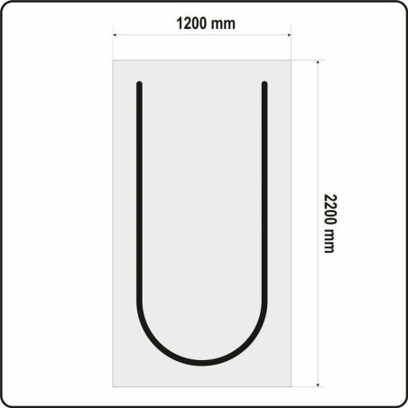 Dulkių dangtelis durų angoms . Medžiaga - stora, bespalvė, skaidri pe plėvelė. Plėvelės matmenys 217 cm x 117 cm. U formos angos dalis "durys" angos plotis 60 cm angos aukštis 180 cm . Atida su įsiūtu užtrauktuku su vienu užtrauktuku apatinėje dalyje "slenkstis" apie 15 cm , plėvelės aukštis viršuje virš užtrauktukų galų apie 20 cm. Dangtis neleidžia įvažiuoti, pvz. Plėvelė prie sienos tvirtinama 30 mm x 10 m pločio lipnia juosta - pridedamas 1 ritinėlis.