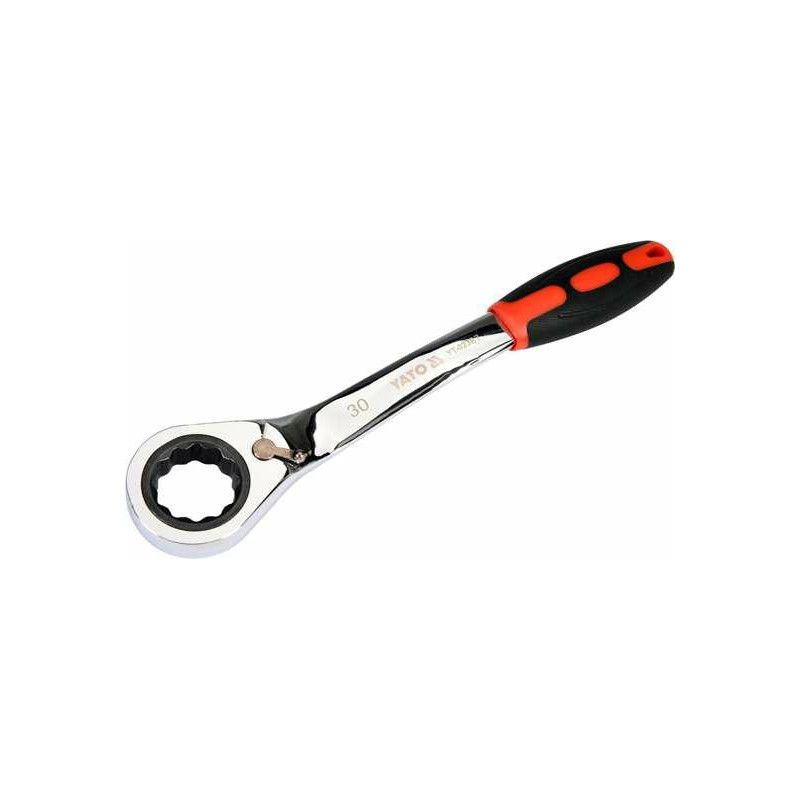 YATO YT-02387 YT-02387 reketinis žiedinis veržliaraktis su išlenktu profiliu, skirtas varžtams atsukti. Rekomenduojama naudoti automobilių servise. - pagamintas iš patvaraus CrV plieno, atsparaus mechaniniams pažeidimams - kietumas: 42-48 HRC - 72 dantys - sukimosi pagal laikrodžio rodyklę / prieš laikrodžio rodyklę jungiklis - ergonomiška gumuoto plastiko rankena, užtikrinanti stabilų sukibimą.