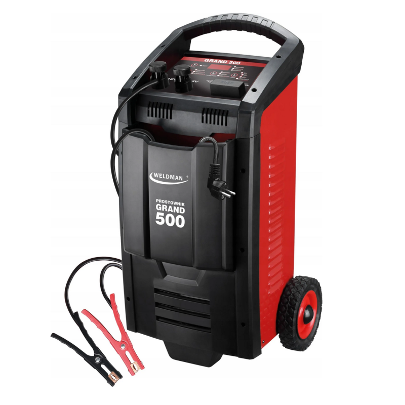 Išmanusis įkroviklis su paleidimo funkcija GRAND 500 skirtas visų tipų 12/24 V švino rūgštiniams akumuliatoriams (WET/MF/CA/EFB/GEL/AGM) ir 12 V ličio jonų akumuliatoriams (4 elementų LiFePO4) įkrauti ir paleisti.