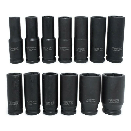 RF-4137MPB "ROCKFORCE LONG SOCKET" 13 vnt. 1/2" 10-32 mm / laikiklis