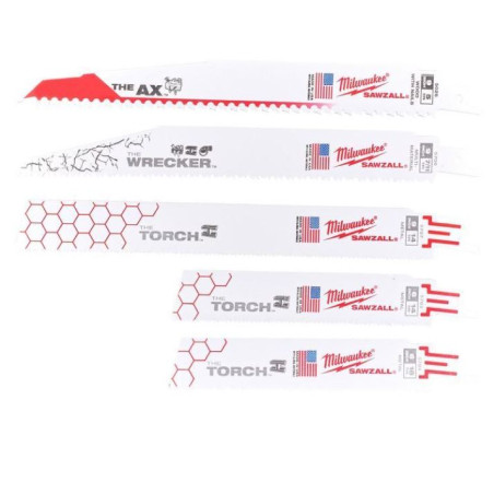 Rinkinio turinys: 2 x AX™ medienai su vinimis - 150 mm x 5 Tpi (48005021) 2 x AX™ medienai su vinimis - 230 mm x 5 Tpi (48005026) 4 x TORCH™ metalui - 150 mm x 18 Tpi (48005784) 2 x TORCH™ metalui.