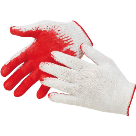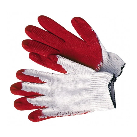 Guma padengtos apsauginės pirštinės, atsparios trinčiai Skirtos asmeninei apsaugai nuo minimalių pavojų Medvilninės. Baigtos briaunuotu apvadu Tinka visiems mechaniniams ir buitiniams darbams Dydis: universalus (vienas dydis).
