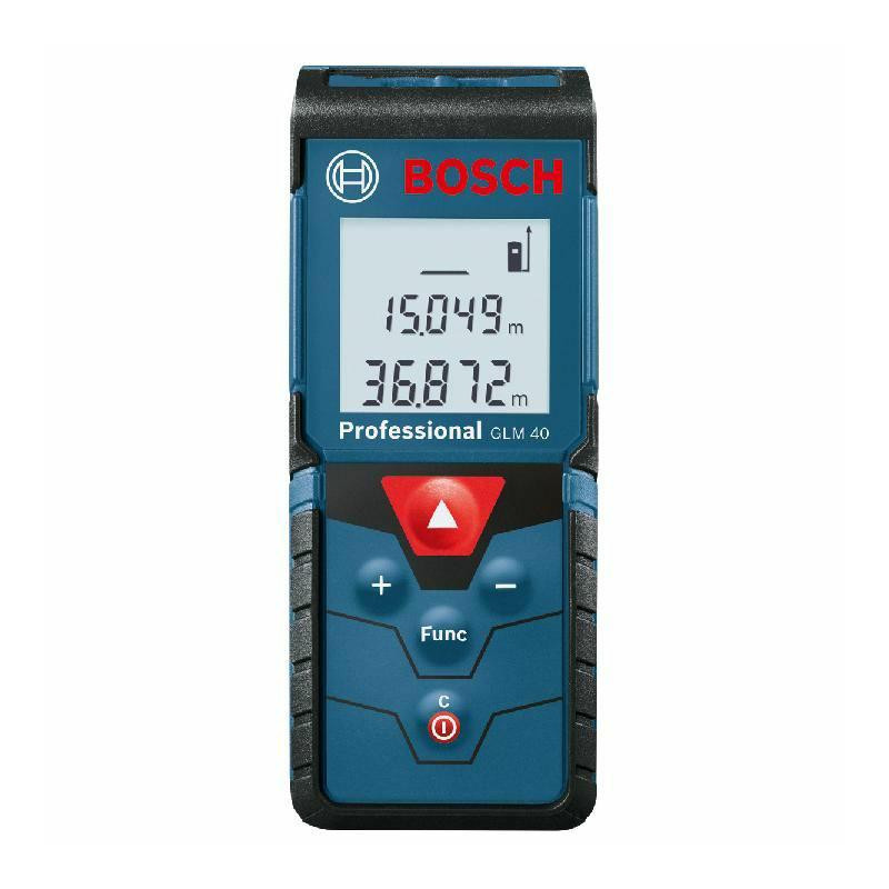 Tvirtas korpusas sertifikuotas kaip atsparus dulkėms ir purškiamam vandeniui (IP54). BOSCH GLM 40 tolimatis siekia iki 40 m. Matavimo rezultatai garantuojami ISO sertifikatu. Matavimo laikas trumpesnis nei 0,5 s. GLM 40 tolimatis atlieka tokias funkcijas kaip ilgio, ploto ir tūrio matavimas. Techniniai duomenys: Matavimo diapazonas nuo 0,15 iki 40 m. Lazerio klasė 2. Tikslumas, tipas. +/- 1,5 mm. matavimo laikas, tipas. <0,5 Matavimo laikas maks. 4 s. Maitinimo šaltinis 2 x 1,5 V LR03 (AAA). Automatinis išsijungimas 5 min. Svoris, apie 0,1 kg. 105 mm ilgis. 41 mm plotis. 24 mm aukštis. 24 mm. Baterijos veikimo laikas, vienas matavimas, apie 5000. Apsauga nuo dulkių ir vandens IP 54.