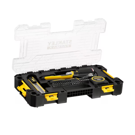 Permatomas dangtelis: lengvai ir greitai atpažįstamas turinys Juostelė: galingas matavimo įrankis Lūžtantis peilis: galima pjaustyti įvairias medžiagas Atsuktuvas su reketu ir antgaliai: galingas atsuktuvas ir 40 antgalių - visapusiškas sprendimas visiems atsukimo darbams. Reketinis mechanizmas leidžia įrankiui taikyti sukimosi jėgą tik viena kryptimi, o priešinga kryptimi jis juda laisvai Daugiafunkcinės replės: leidžia griebti arba laikyti įvairaus dydžio objektus Patvari konstrukcija: užtikrina tvirtą veikimą bet kokioje darbo aplinkoje Kompaktiški matmenys: leidžia lengvai transportuoti ir laikyti. Neprarandama vietos dėžutėje, kad būtų galima pasiūlyti visą turinį kompaktiškame rinkinyje Platus pasirinkimas: 44 vnt. Juosta 5 m Lūžtamasis peilis 18 mm Fatmax Multigrip replės 250 mm Fatmax reketinis antgalių laikiklis 40x Antgaliai: ? PZ1x2 - PZ2x2 - PZ3 ? PH1x2 - PH2x2 - PH3 ? ŠEŠIABRIAUNIAI: 1,5 - 2 - 2,5 - 3 - 4 - 5 - 5,5 - 6 - 7 - 8 ? RO