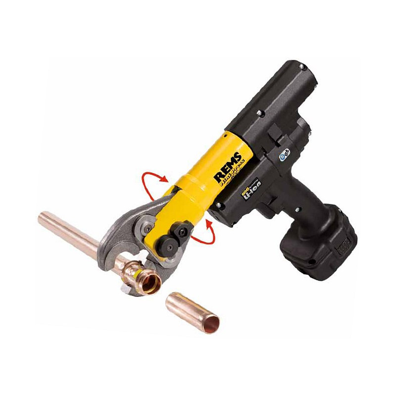 Akumuliatorinis radialinis presas su priverstiniu grįžimu, skirtas 10-40 mm 3/8 - 1 1/4" presavimo jungtims gaminti. Skirtas darbui su "REMS Mini" presavimo žnyplėmis. Rotacinės presavimo žnyplės su automatiniu fiksavimu. Elektrohidraulinė pavara, su efektyviu 14,4 V, 420 W akumuliatoriniu varikliu, tvirta planetine pavara imituojančia centrinį stūmoklinį siurblį ir didelio našumo hidrauline sistema. Apsauginis impulsinis jungiklis. Integruotas šviesos diodų darbinis žibintas. Li-Ion 14,4 V, 1,6 Ah akumuliatorius, Li-Ion/Ni-Cd greitasis įkroviklis 230 V, 50-60 Hz, 65 W. Tvirtame lakštinio metalo korpuse.