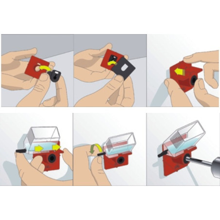 RUBI EASY GRES KIT WITH 8mm DRILL DD Dėl funkcinės vandens rezervuaro su vožtuvu vandens srautui reguliuoti konstrukcijos "Easy Gres" kreipiančiąja galima gręžti skyles tiek vertikaliai, tiek horizontaliai. Dvipusiai klijai leidžia lengvai pritvirtinti "Easy Gres" kreipiančiąją prie bet kokio paviršiaus, kuriame reikia gręžti skylę. Grąžtas skylėms porcelianinėse akmens masės plytelėse gręžti Kreipiančioji su centruojančia skyle ir vandens rezervuaru užtikrina centravimą ir vėsų orą.