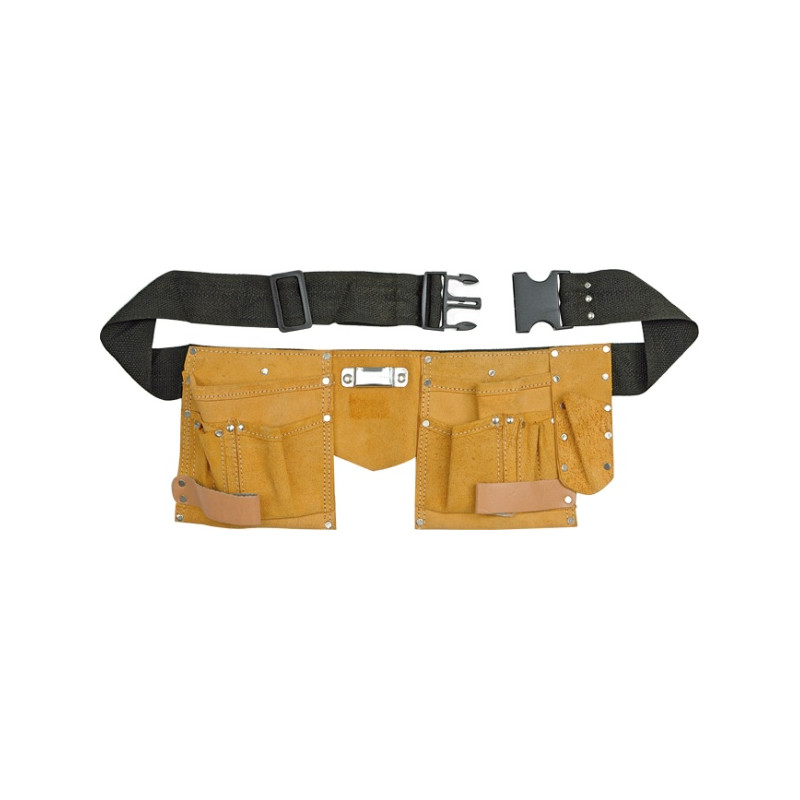 Montuotojo diržas su 11 kišenių, skirtas smulkiems įrankiams laikyti ir nešiotis darbo vietoje. Tvirtai pagamintas iš minkštos odos. Kišenės susiūtos storu, tvirtu siūlu, papildomai sutvirtintos plieninėmis kniedėmis. Centrinėje dalyje metalinis laikiklis matavimo juostoms tvirtinti. EAN: 5906083787508 Vienetas: SZT Svoris [g]: Medžiaga: skelta oda Spalva: geltona