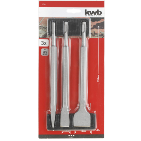 250 mm ilgio smailiojo kalto, skirto betono ir grindų dangos nuėmimo darbams. 20 mm pločio ir 250 mm ilgio plokščiojo kalto, skirto plytelėms ar tinkui šalinti. Kaltas su kalto dydžiu: 40 mm pločio ir 250 mm ilgio - vamzdžiams ir elektros kabeliams pjauti betono, klinkerio ir kalkinio smiltainio sienose. Kaltai pagaminti iš grūdinto plieno, o dėl smėliuojamo paviršiaus optimizuota trintis.
