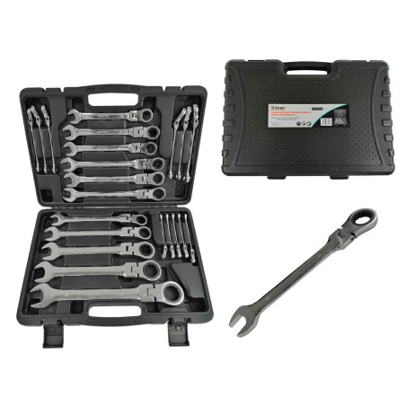Jungiamųjų reketinių žiedinių veržliarakčių rinkinys. Rinkinį sudaro 22 dalys, jos pateikiamos dėkle.Veržliarakčių dydžiai: 6; 7; 8; 9; 10; 11; 12; 13; 14; 15; 16; 17; 18; 19; 20; 21; 22; 23; 24; 27; 30; 32 mm.