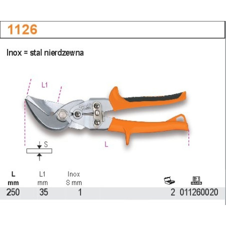 Beta 1126 svirtinės lakštinio metalo žirklės - Ilgis: 250 mm Dešiniarankės ir kairiarankės.