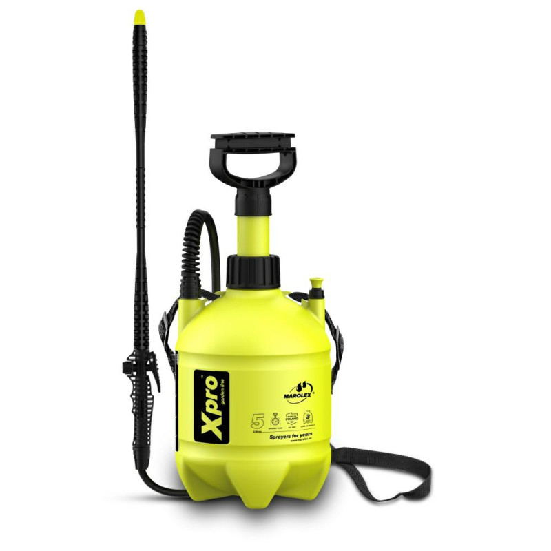 NAUDOJIMAS: Xpro slėginis purkštuvas skirtas apsauginiams ir priežiūros darbams su trąšų, insekticidų, fungicidų, piktžolių naikintojų vandens tirpalais atlikti. Jis taip pat skirtas ekologiškiems preparatams, pagamintiems parafino arba ricinos aliejaus pagrindu, ir augaliniams preparatams purkšti. DARBO TIEKIS: 5 l SIEKIS: 0,25 MPa NETIESIOGINIS SUNKIS: 1,2 kg Purkštuvą sudaro: - 44 cm ilgio polipropileninis modulinis lynas su reguliuojamu antgaliu MR1.5 - (1,5 mm) - dozavimo vožtuvas su užrakinama padėtimi - vidinis filtras rankenoje - 130 cm ilgio žarna su spyruoklėmis sutvirtintu PVC pynimu - nešiojimo diržas - siurblio bakelis, taip pat naudojamas kaip nešiojimo rankena - apsauginis vožtuvas - naudojimo instrukcija - pakuotė - susitraukianti plėvelė.