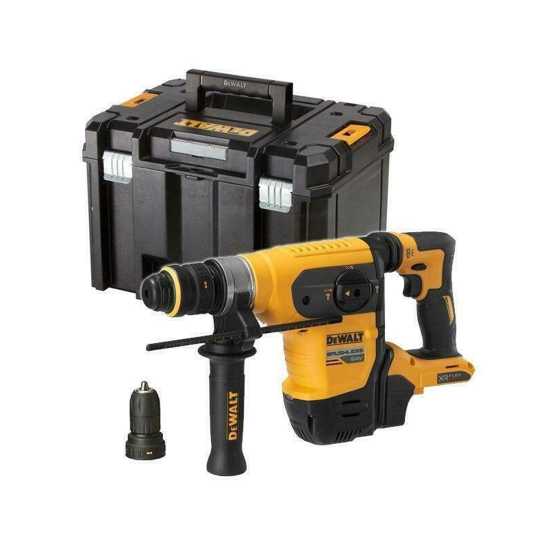 DCH417NT-XJ DeWALT umożliwia wiercenie w betonie, drewnie, stali, tworzywach sztucznych, a maksymalna średnica komfortowego wiercenia w betonie to 32 mm. Zestaw nie zawiera akumulatorów i ładowarki, a młotowiertarka DCH417 dostarczana jest w walizce.