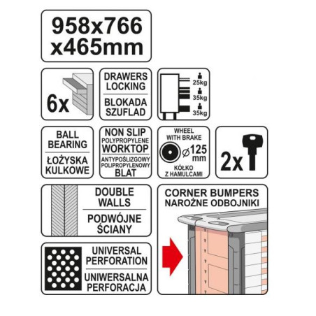 YT-0902 YATO DIRBTUVIŲ SPINTELĖ 6 STALČIŲ 0902