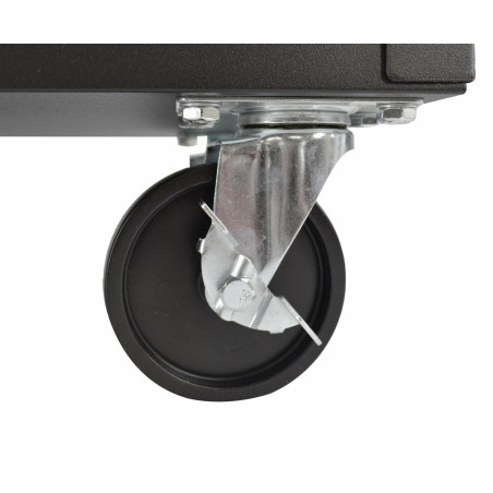 Pagaminta iš plieno lakštinio plieno, dažyta milteliniu būdu. 3 lygių talpios lentynos. Ergonomiška prisukama rankena, kad būtų lengva manevruoti. 4 ratukai, įskaitant 2 fiksuotus ir 2 pasukamus guolinius ratukus su stabdžiu. Tinka įvairiems daiktams vežti automobilių servisuose, sandėliuose ir garažuose. Techniniai duomenys: Dydis: 795x790x370 mm Lakšto storis: 1,3 mm Lentynų aukštis: 85 mm Ratukų skersmuo: 100 mm Maksimali apkrova: 130 kg Svoris: 12 kg