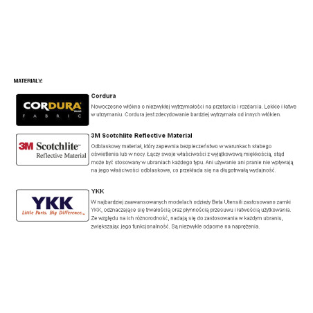 - Pagaminta iš T/C drobės, 65 % poliesterio, 35 % medvilnės, 280 g/m2 - Cordura® alkūnių sutvirtinimai - 3M Scotchlite™ šviesą atspindintys intarpai - YKK® dvieilis užtrauktukas su kabliuku ir kilpa - Rankogaliai su kabliukų ir kilpų užtrauktukais - Dvi didelės krūtinės kišenės su kabliukų ir kilpų užtrauktukais - Dvi gilios priekinės kišenės su užtrauktukais - Dvi vidinės kišenės XL dydis.