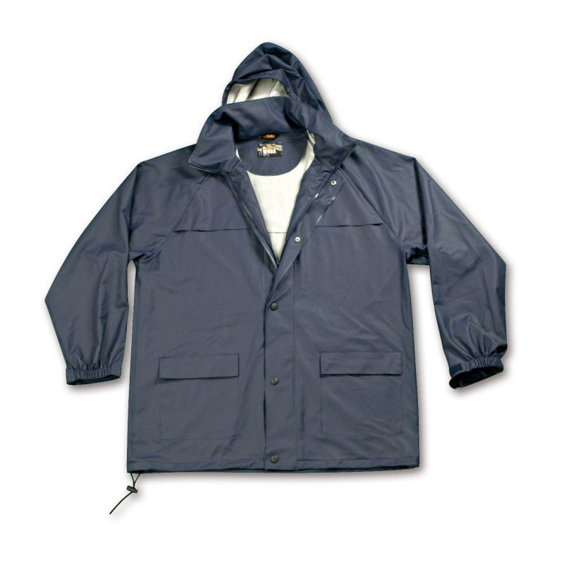 Vandeniui atspari striukėVandeniui atspari PVC medžiaga. Užtrauktukas su dvigubu užtrauktuku. Rankogaliai su įsiūtomis gumelėmis ir velcro užtrauktukais reguliavimui. Praktiškas gobtuvas, paslėptas apykaklėje, su dviem reguliuojamais kamščiais.