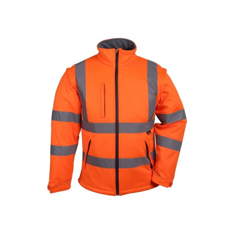 - Atspindinčios juostos pagrindas 65% poliesteris, 35% medvilnė, padengta (stiklo mikrogranulėmis), 2" pločio, pilkos spalvos - Vandeniui atsparus užtrauktukas per visą ilgį - Viena užtrauktuku užsegama kišenė ant krūtinės, dvi įstrižinės apatinės kišenės - Velcro reguliuojami rankogaliai, briaunuotas apačios kraštas, paslėpta ID kišenė - Nuimamos rankovės L dydis